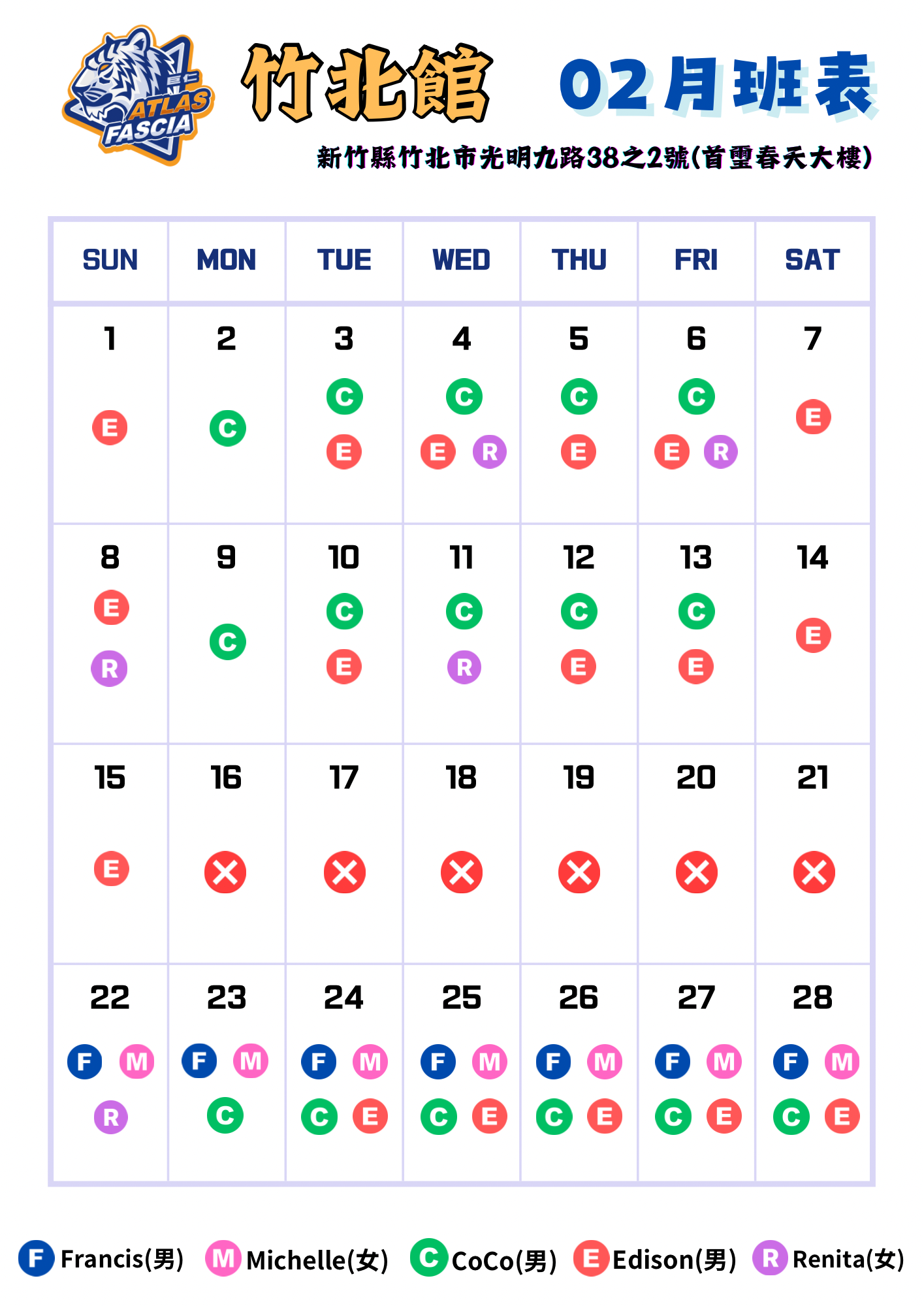 Monday – Friday: Zhubei Branch 13:30–22:00 / Taichung Branch 10:00–22:00